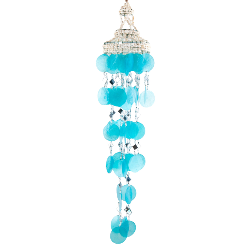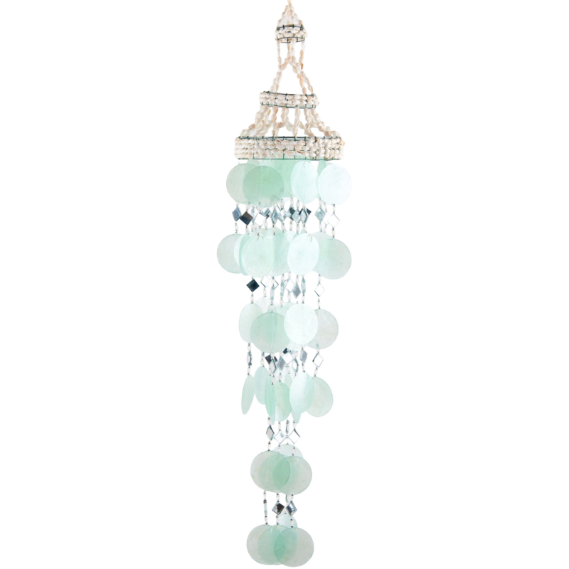 Capiz schelpen hanglamp/ XL windgong met spiegeltje 100x35 cm turqouiseCapiz schelpen hanglamp met spiegeltje 35x100 cm turqouise